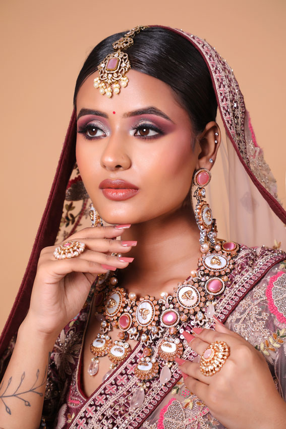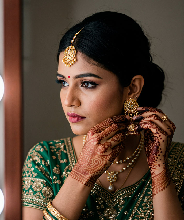 From the initial consultation to the final finishing touch, we take time to understand your personality, outfit, and wedding theme to create a perfectly harmonized bridal look. Our approach combines expert techniques, premium products, and a deep understanding of Indian bridal aesthetics to deliver flawless results. Whether it’s a classic red bridal style or a contemporary pastel glam, we ensure every element — from base to bold detailing — is executed with precision.